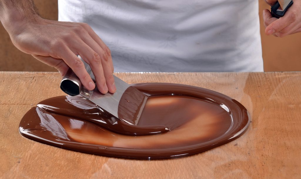 השוקולד צריך ערבוב מתמיד. מלמין הוא חומר עמיד מאוד שאינו סופח או מפריש ניחוחות, טעמי לוואי וחומרים אחרים אל תוך השוקולד, לכן אסטלה מעדיפה כפות מלמין על פני לקקן סילקון או מטרפה.